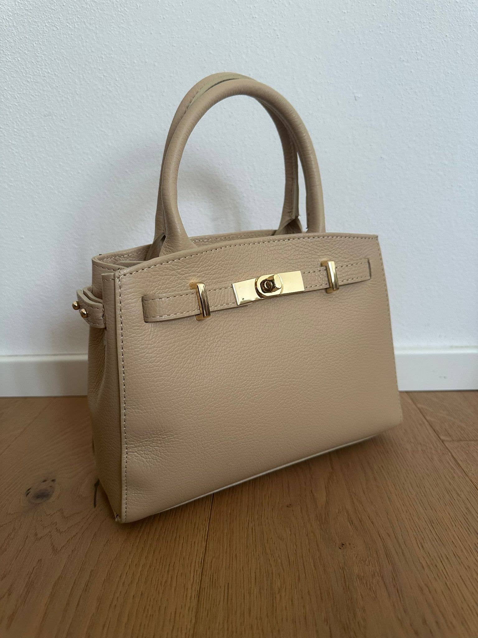 Gefertigt aus echtem Leder, Made in Italy, mit strukturierter Form und feinen goldfarbenen Details.