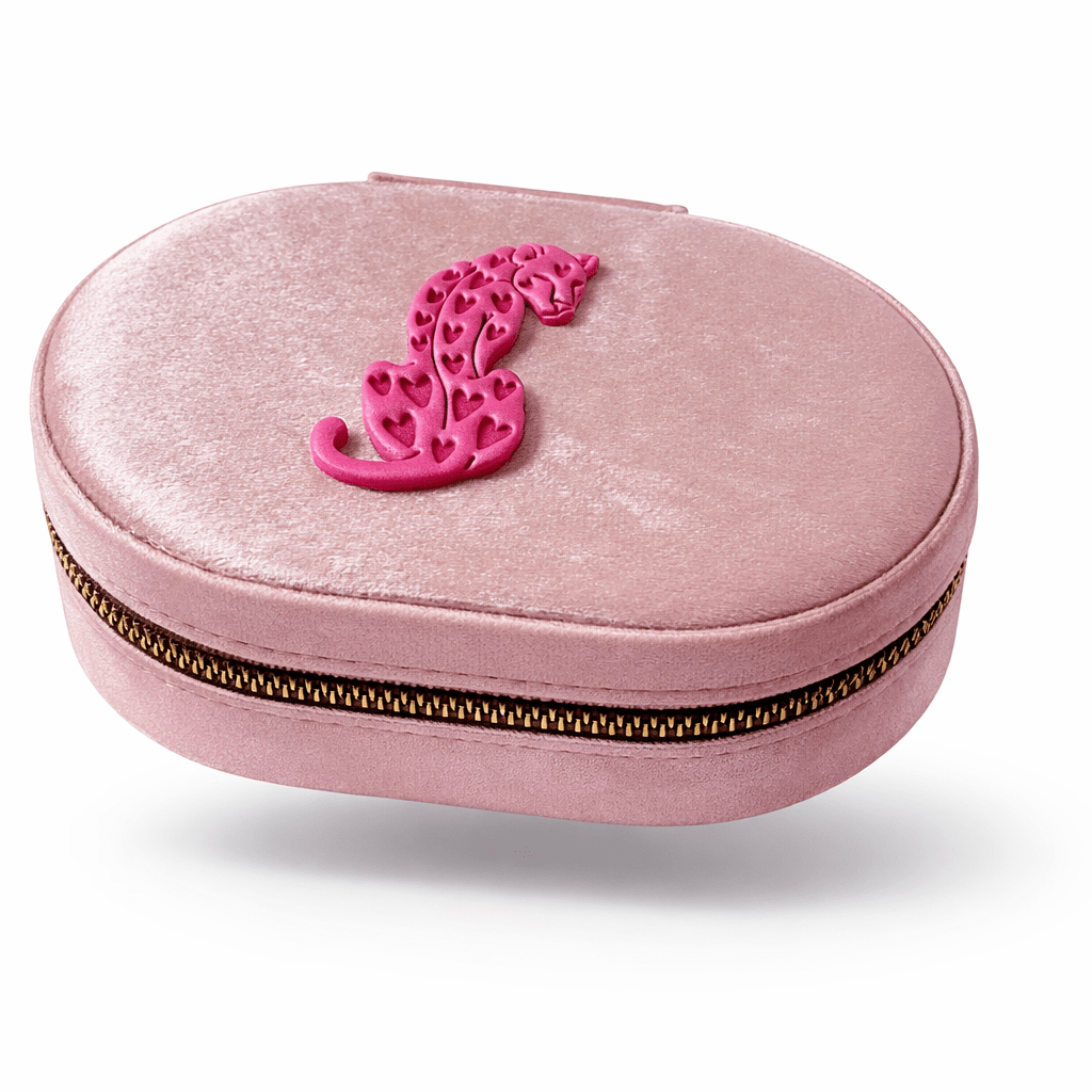 Elegantes Schmucketui aus weichem Samt in zartem Rosé.
