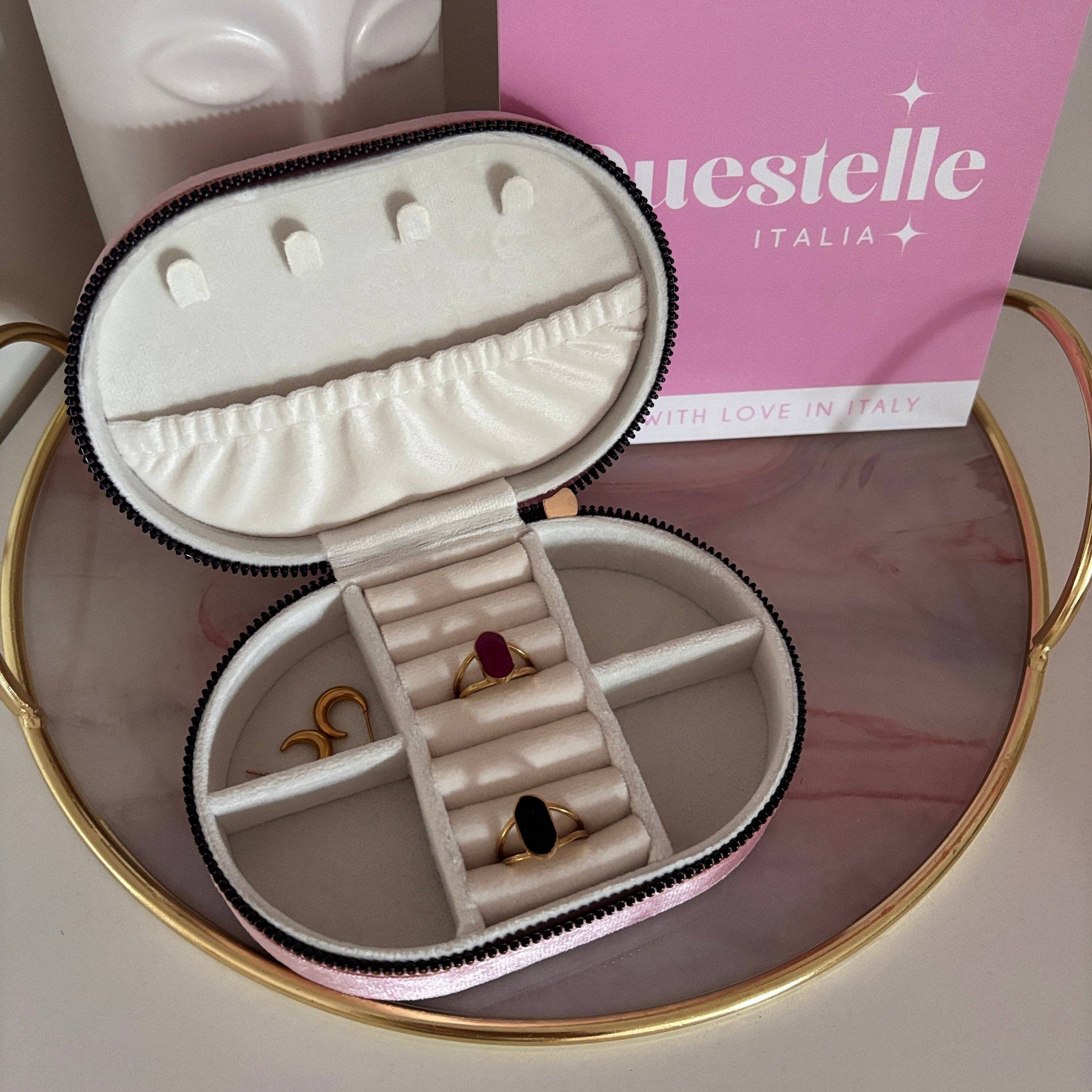 Kompakt und durchdacht gestaltet, bietet es sicheren Platz für Ringe, Ohrringe, Ketten und Armbänder.