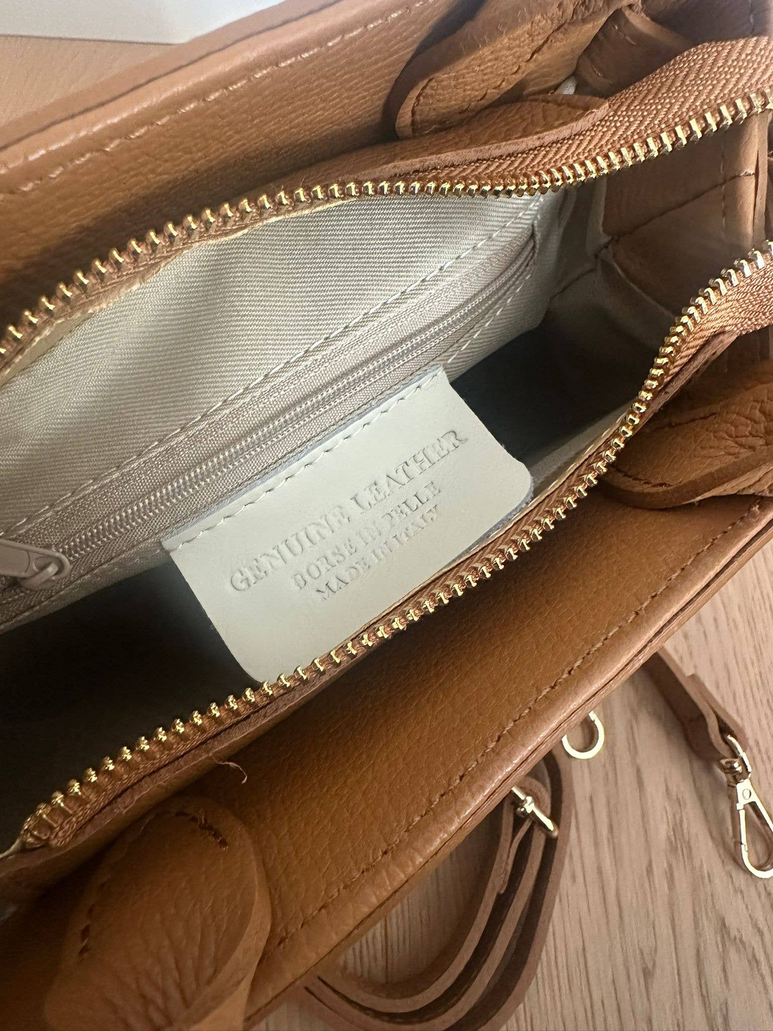 Gefertigt aus echtem Leder, Made in Italy, mit strukturierter Form und feinen goldfarbenen Details.